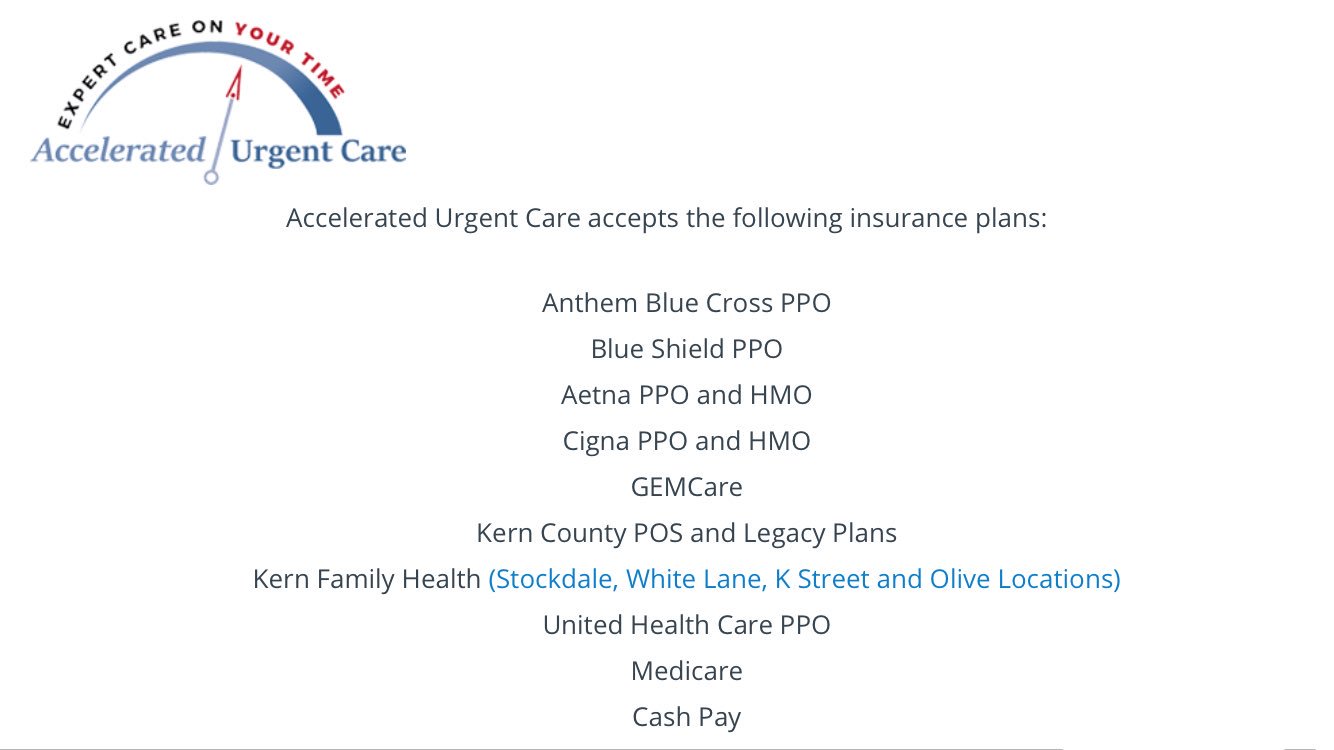 Auc Bakersfield On Twitter Accelerated Urgent Care Accepts The Following Insurance Plans Https T Co 3s6kcgesev Twitter